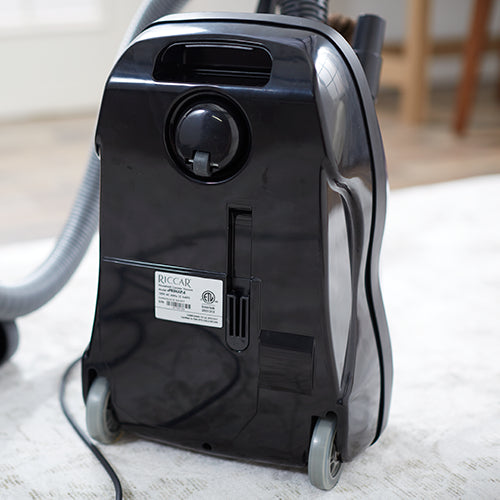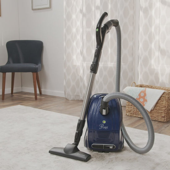 Cleaning bare floors couldn't be easier than with the Prima Straight Suction canister from Riccar. Equipped with a 10-amp motor, 28-foot power cord, and air-driven turbo nozzle for carpets, this powerhouse of a vacuum features a microfiber floor tool plus a floor turbo brush for cleaning rugs, self-sealing HEPA media bags, and a granulated charcoal filter.