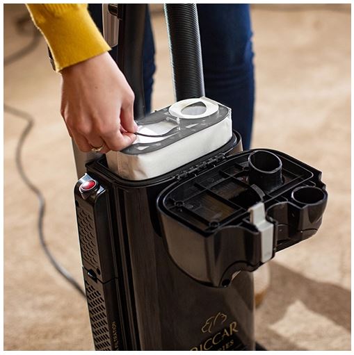 - Top-loading HEPA media bag captures more dust and locks in particles like dust, dander, and pet hair.
